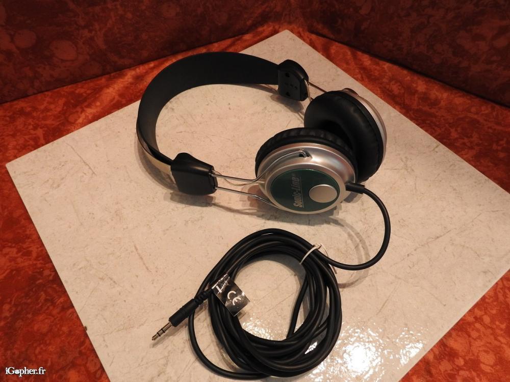 Casque audio Sonic-Line. Diamètre d'un écouteur 7 cm. Longueur du câble 3 mètres.