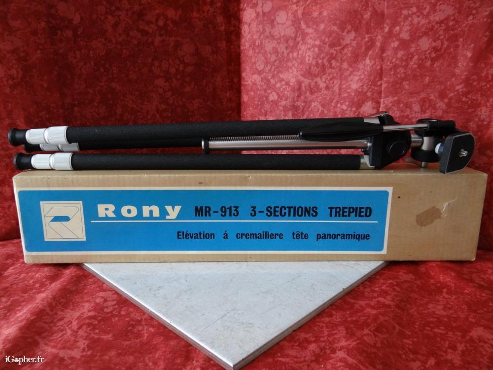 Il est conçu pour porter un appareil photo Rony MR-913. Ce trépied offre une hauteur maximum de 1,36 m.