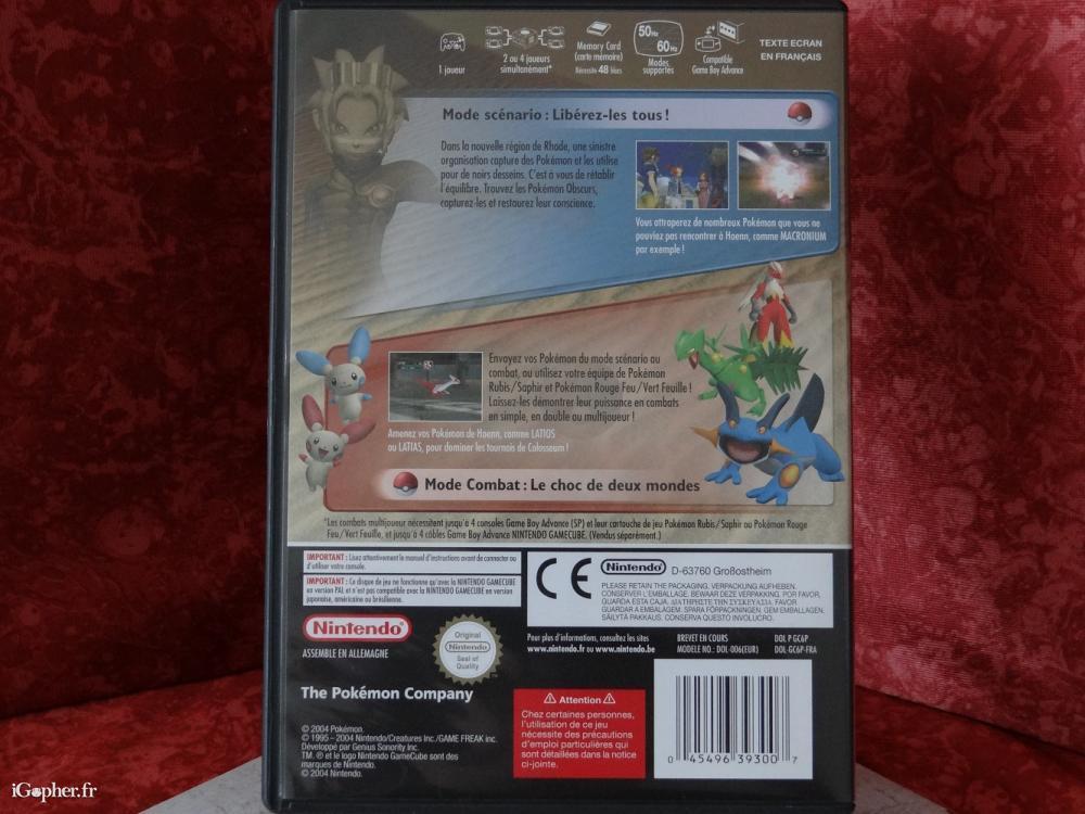 Ce jeu vidéo "Pokémon Colosseum" sur GameCube est d'occasion mais en bon état. Il est fourni avec sa carte mémoire N°59.