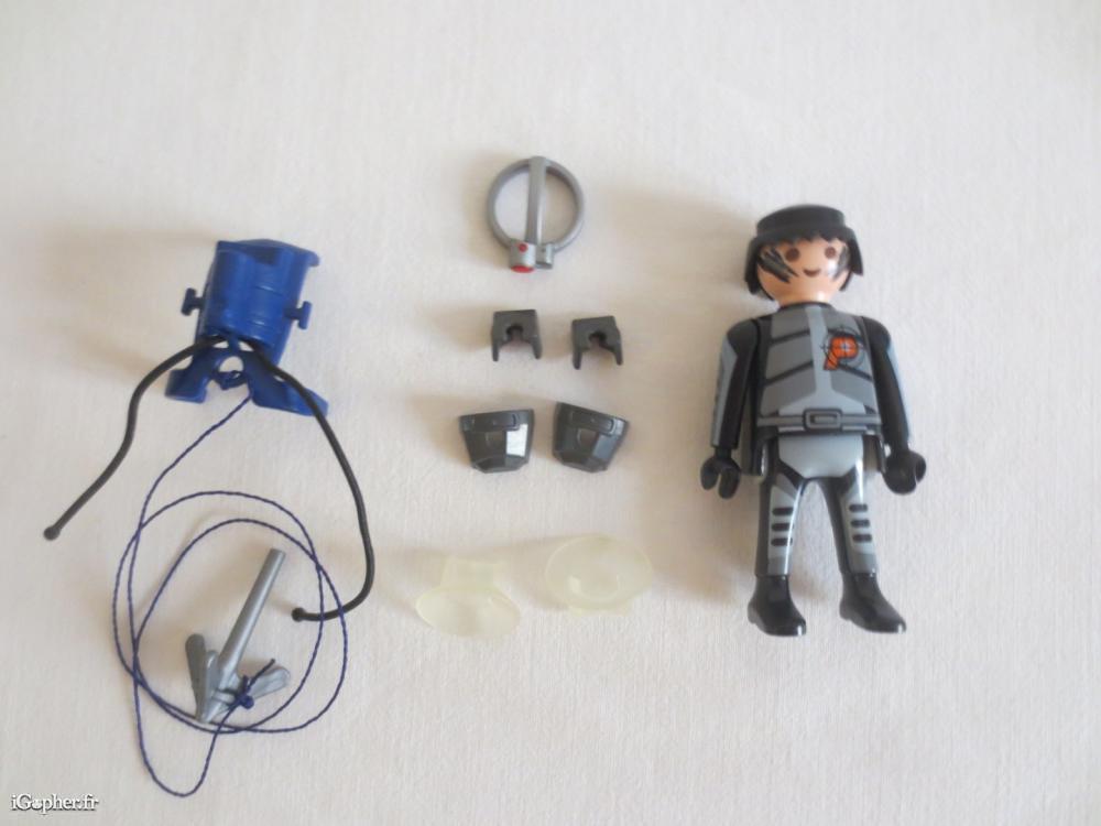 Ce playmobil s'accroche aux vitres grâce à deux ventouses. Figurine Playmobil agent secret avec sa boite et ses accessoires.