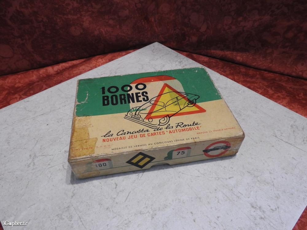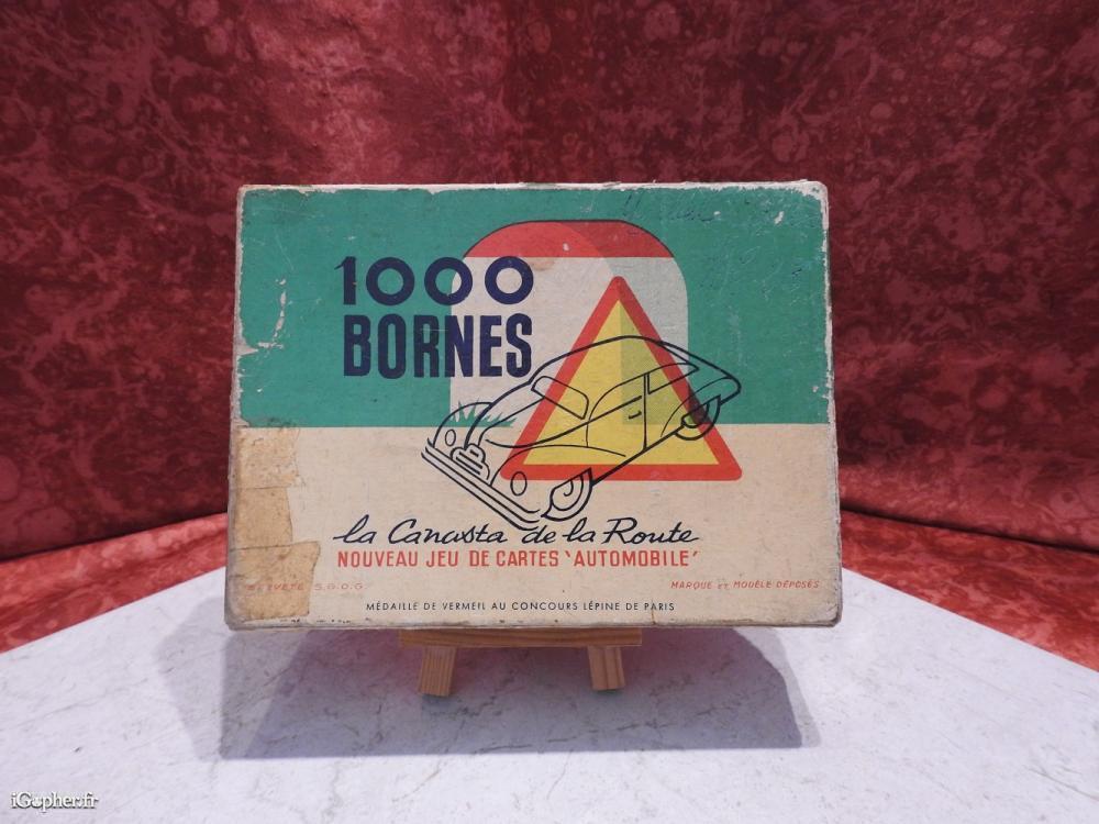 Jeu du 1000 Bornes édition de 1954. Il est d'occasion, en bon état et complet. La boîte a quelque peu souffert et elle a été scotchée. Cette édition est la première d'Edmond Dujardin en 1954. À cette époque, la Canasta est le jeu à la mode et le jeu Touring ressemble beaucoup à la Canasta dont il reprend le mécanisme d'accumulation de cartes devant soi et une pioche régulière pour compléter sa main.