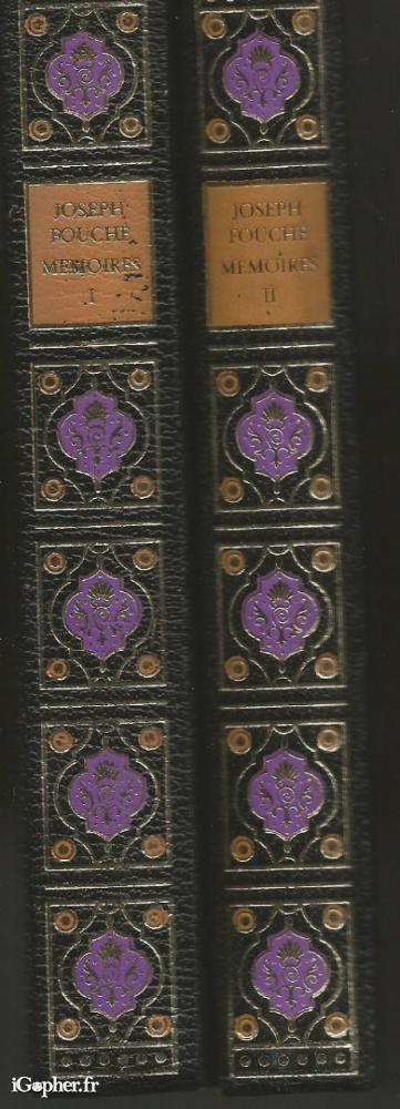 Un lot de deux ouvrages, 2 tomes qui titrent "Mémoires de Joseph FOUCHE, ministre de la police et duc d'Otrante". Ces livres ont été publié aux éditions de SAINT CAIR en 1967. Le premier comprend 296 pages et le second, 269 pages.