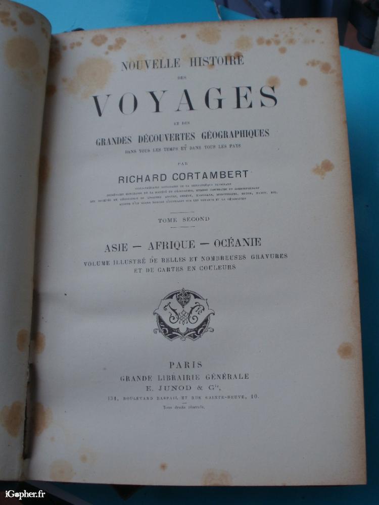 Le second livre titre : Nouvelle histoire des voyages et des grandes découvertes géographiques dans tous les temps et dans tous les pays - Tome second : Asie, Afrique, Océanie. (884 pages, poids 3 100 grammes).