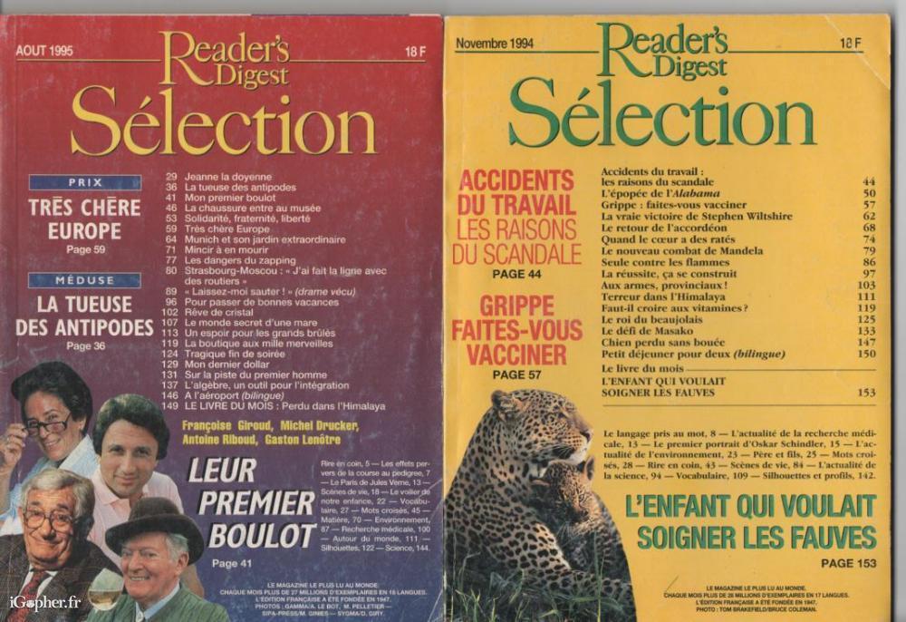 Quatre anciens numéros du Reader's Digest Sélection. Livre au choix à 1€ l'unité, ou en lot pour le prix indiqué.