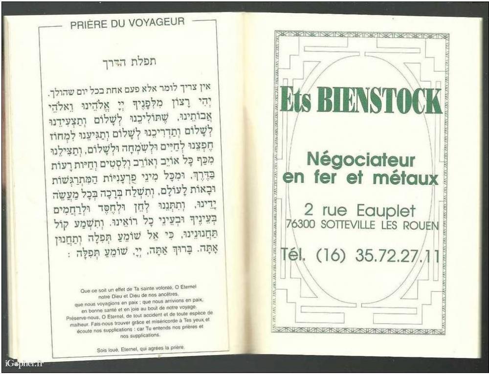 Je laisserai la lettre d´envoi de la société et le message du Grand Rabbin de France.