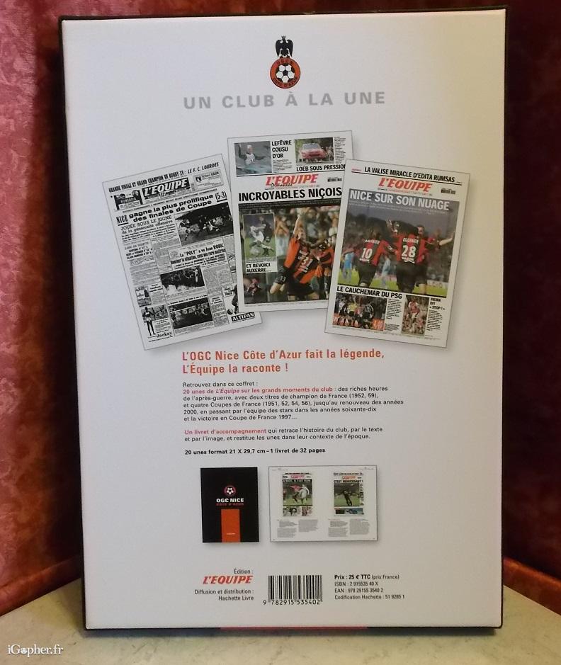 L'OGC Nice Côte d'Azur a fait la légende, le journal l'équipe la raconte ! Ce coffret est en très bon état et retrouvé à l'intérieur de celui-ci : 20 unes sur les grands moments du club en format 21 x 29.7 cm, de riches heures de l'après-guerre, avec 2 titres de champion de France (1952/59), et 4 coupes de France (1951, 52, 54 & 56), jusqu'au renouveau des années 2000, en passant par l'équipe des stars dans les années 70, et la victoire en Coupe de France 1997...