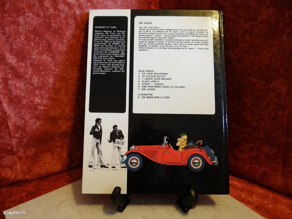 C'est le 7ème volume de la bande dessinée "Clifton Sir Jason", ce livre est d'occasion. Il est paru aux éditions Le Lombard en 1982.