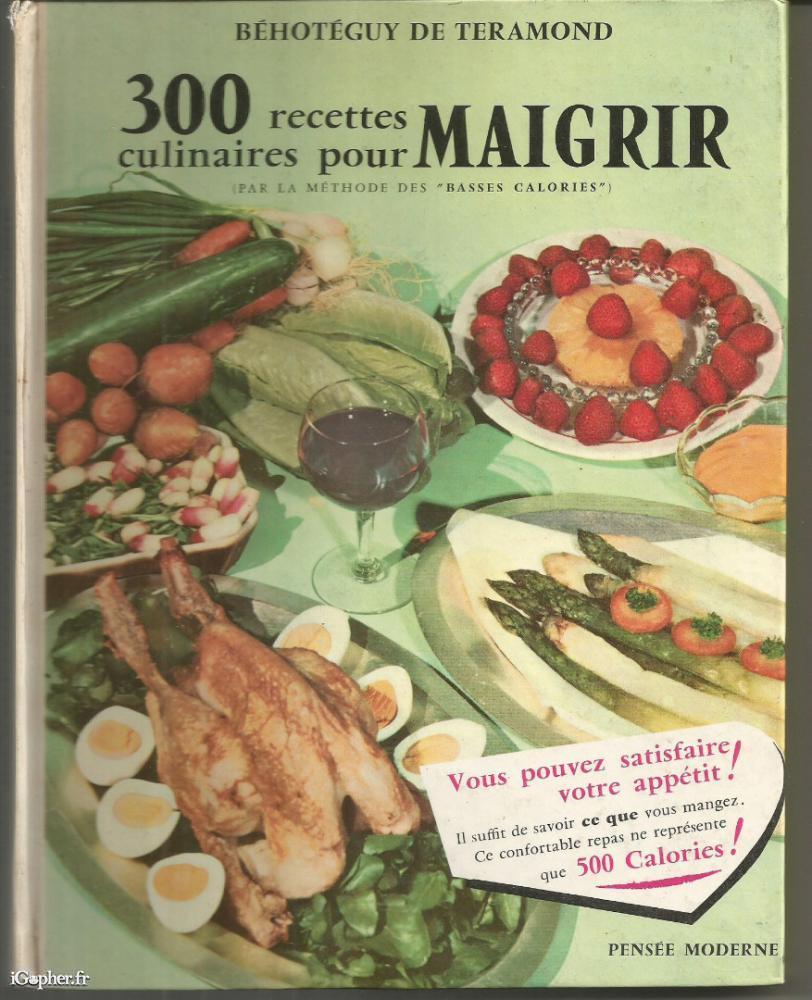 Livre de recettes de 188 pages édité en 1968 qui a été écrit par BEHOTEGUY de TERAMOND. Il titre : 300 recettes culinaires pour maigrir par la méthode des "Basses Calories".