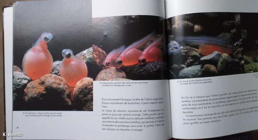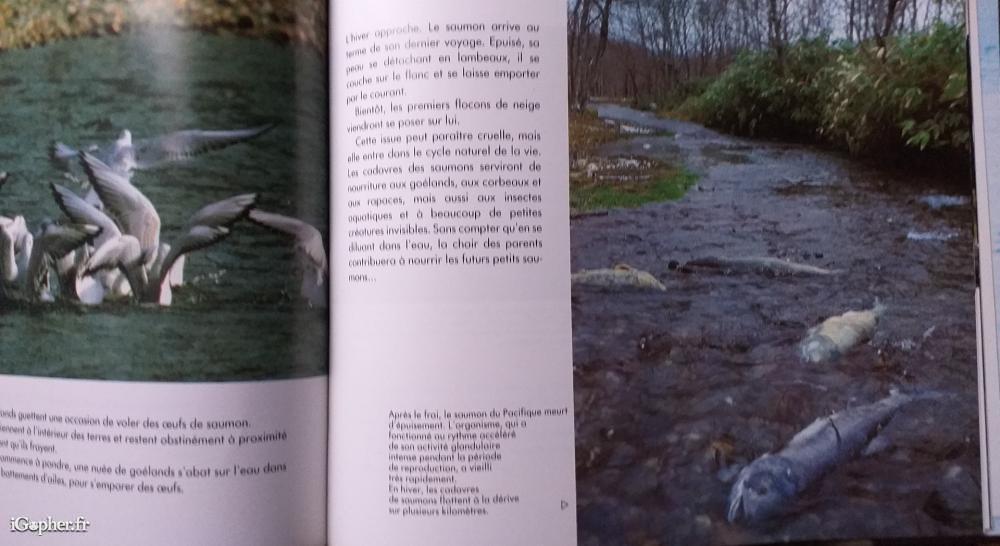 C'est un livre sur la vie des saumons avec des photos en couleur. Il comprend un total de 38 pages.