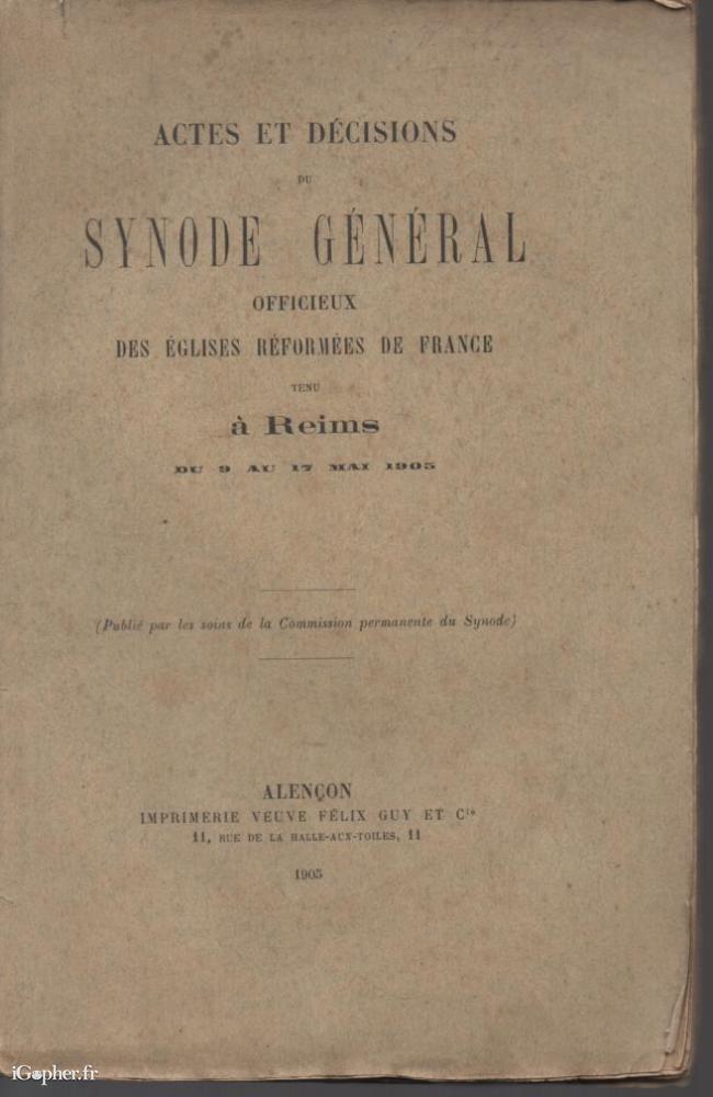 Un livre au long titre : Actes et Décisions du Synode Général Officieux des Eglises de France", qui s'est tenu à Reims du 9 au 17 Mai 1905.