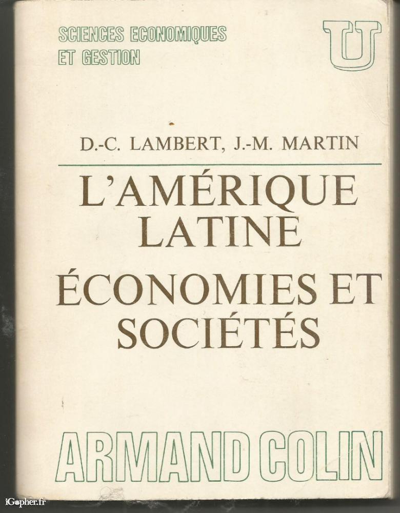 Cet ouvrage titre "L'Amérique Latine - économies et sociétés". Un livre de la Collection U - Série "sciences économiques et gestion" dirigée par J. le Bourva. Ses auteurs : Denis-Clair LAMBERT, Professeur d'Economie politique à l'Université de Lyon II et Jean Marie MARTIN, Maître de recherche au C.N.R.S.