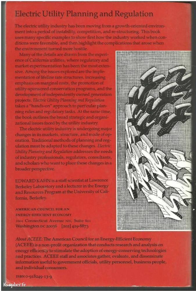 Cet ouvrage sur l'électronique titre "ELECTRIC UTILITY - PLANNING AND REGULATION", il est écrit en anglais par Edward KAHN.