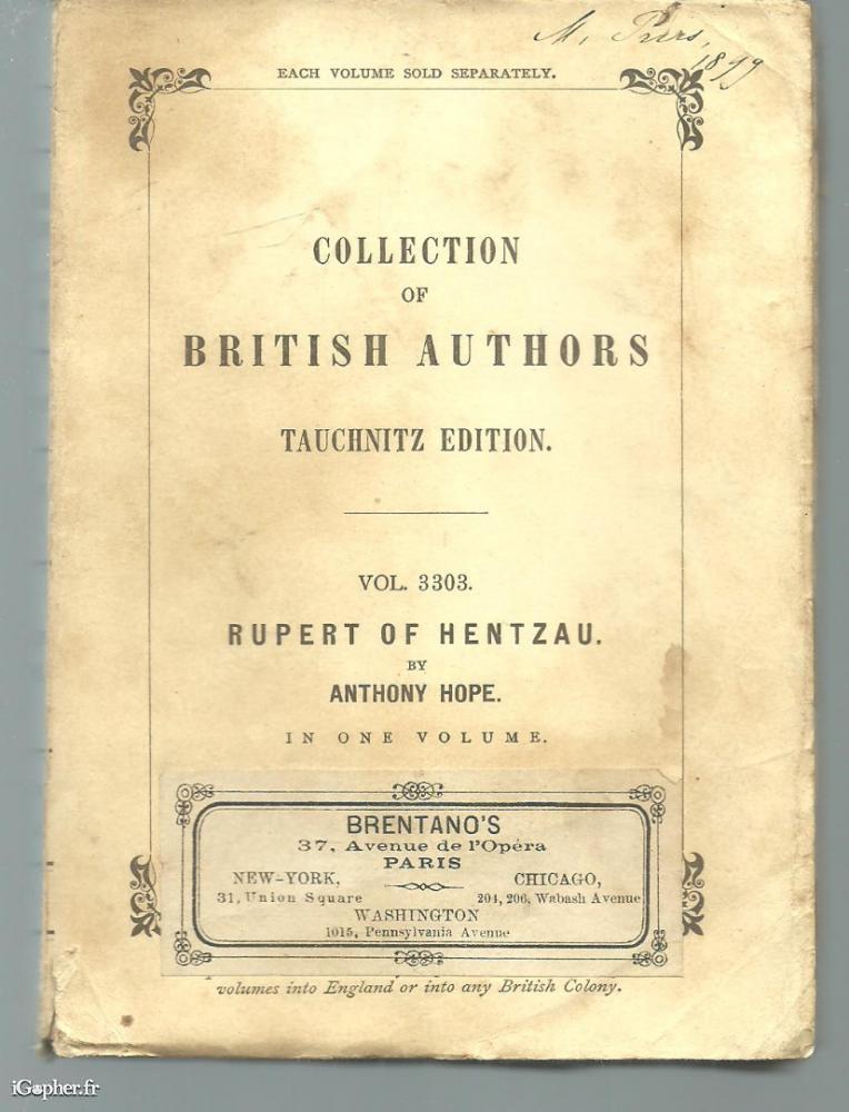Livre en anglais de Anthony HOPE, il titre "Rupert of Hentzau" et fait partie de la Collection "BRITISH AUTORS". Volume N°3303.
