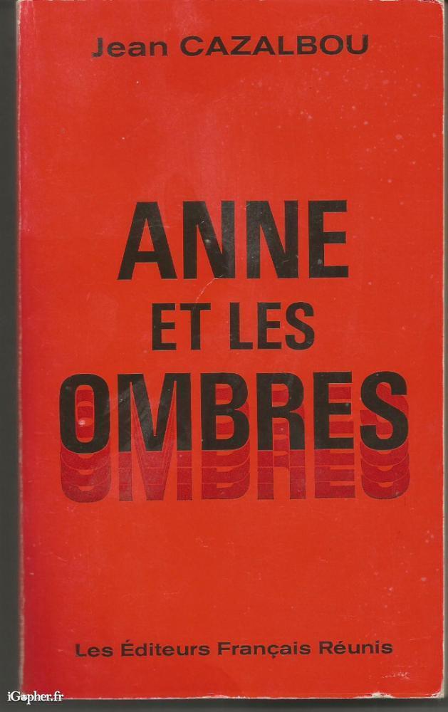 Livre de 294 pages (+ table des matières) écrit par Jean CAZALBOU, il titre "Anne et les ombres". Un ouvrage paru chez Les Editeurs Français Réunis en 1972.