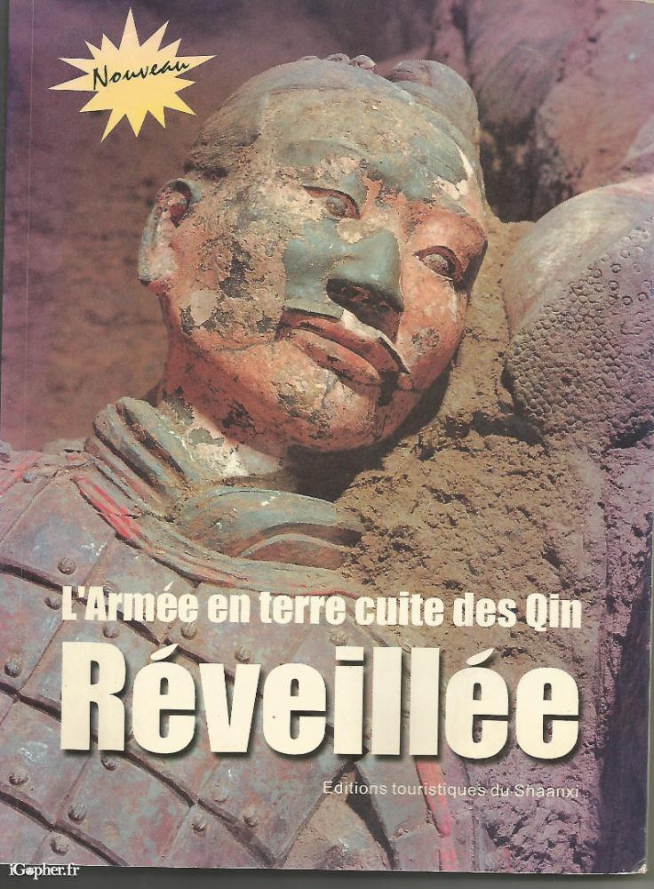 Un ouvrage qui titre "L'armée en terre cuite des Qin : Réveillée". Un livre de 128 pages rédigé et traduit par Lei Xiuqin et Meng Kuanrang. Première édition publiée en 2001.