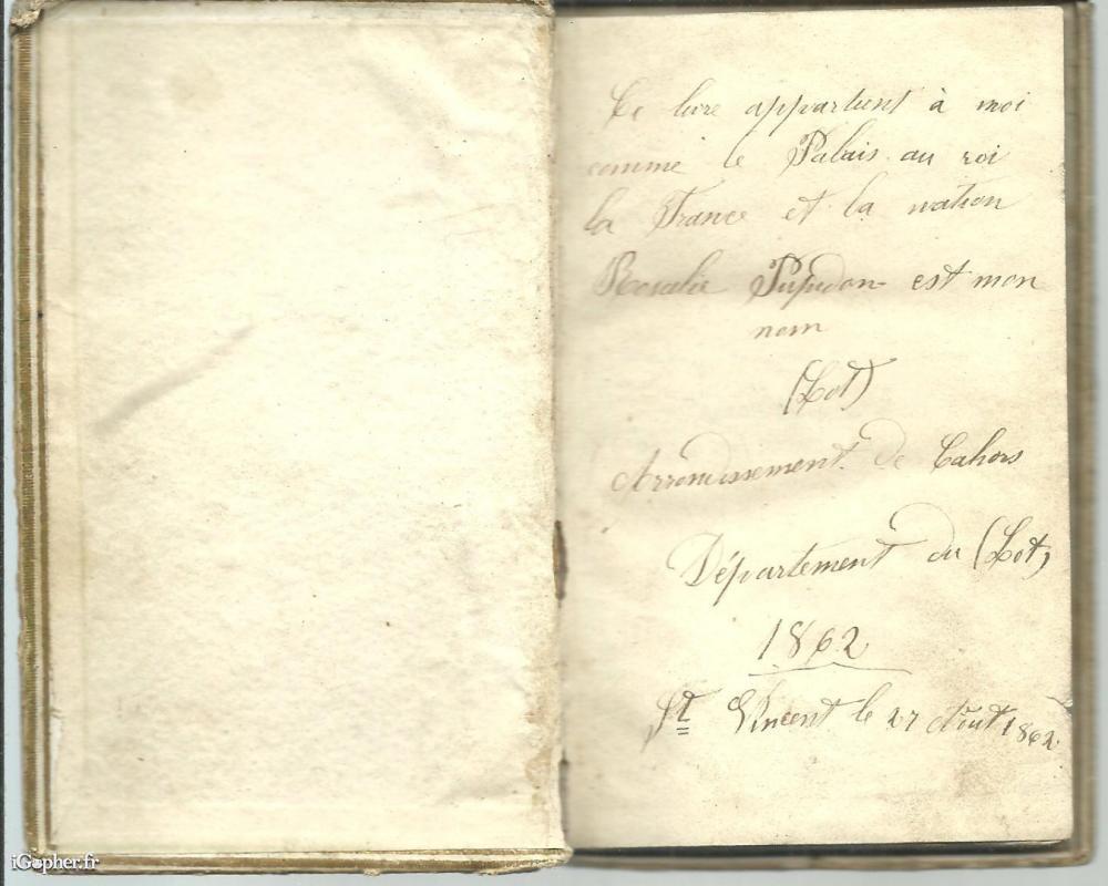 Etat du livre : intérieur en bon état, quelques petites coupures sur le rebord des pages une annotation écrite en 1862 sur toute une pages. La couverture passée, usagée. L'image insérée en plein milieu n'est pas nette et quelques petits manques ou coupures également.