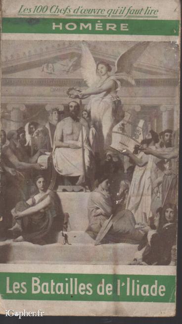 Ouvrage de la Collection "Les 100 chefs d'oeuvre qu'il faut lire", écrit par Homère, il titre "Les Batailles de l'Iliade".