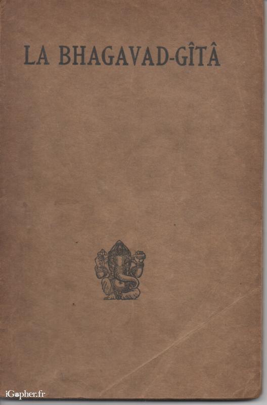 Il titre "La Bhagavad-Gîtâ", traduite du Sanskrit avec une inttroduction de Emile SENART, membre de l'institut. Livre de 64 pages paru en 1944. Il s'agit de la 2ème édition avec le texte en regard.Etat moyen, couverture de devant en partie désolidarisée du dos, bas de la couverture plié.