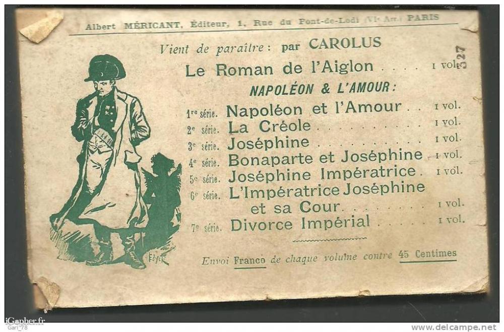 Un livre écrit par CAROLUS, il fait partie de la collection Napoléon et L'amour (4ème série) et titre : Bonaparte et Joséphine.