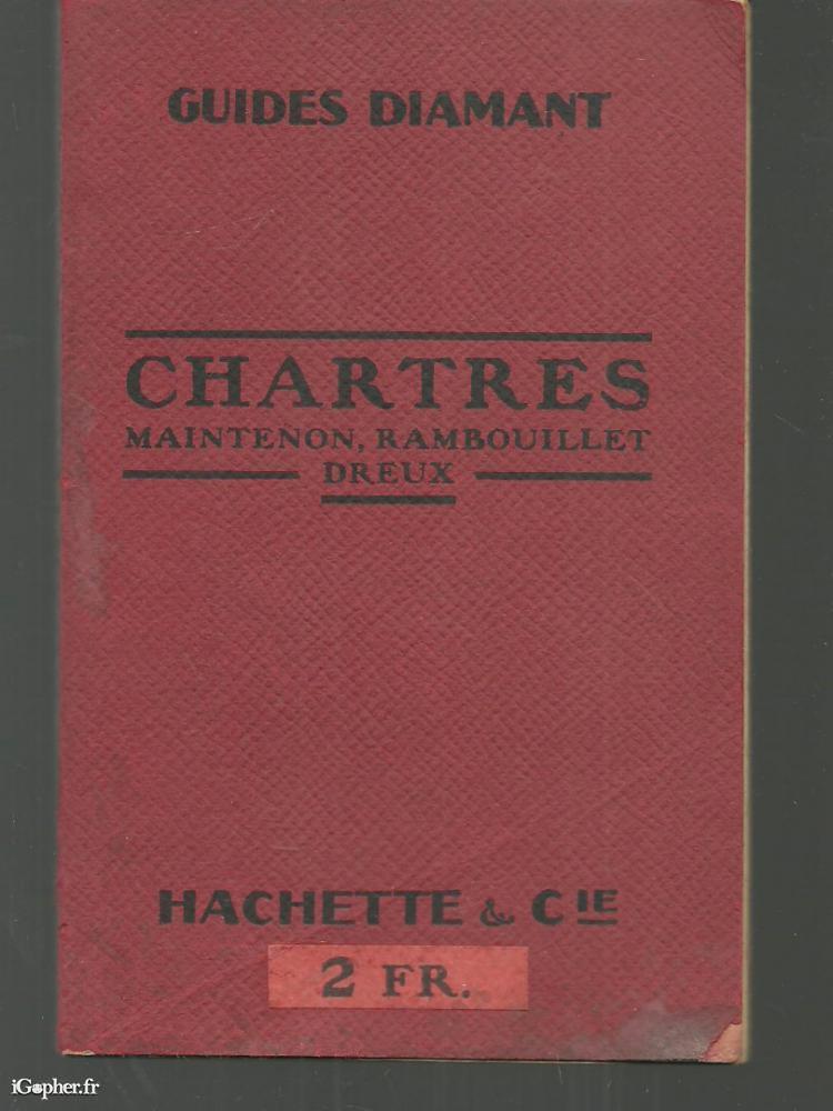 Livre de de la collection GUIDES DIAMANT, il titre " Chartres : Maintenon, Rambouillet, Dreux" et comprend 140 pages avec des pages de pub, 2 cartes, 6 plans, et 9 gravures.