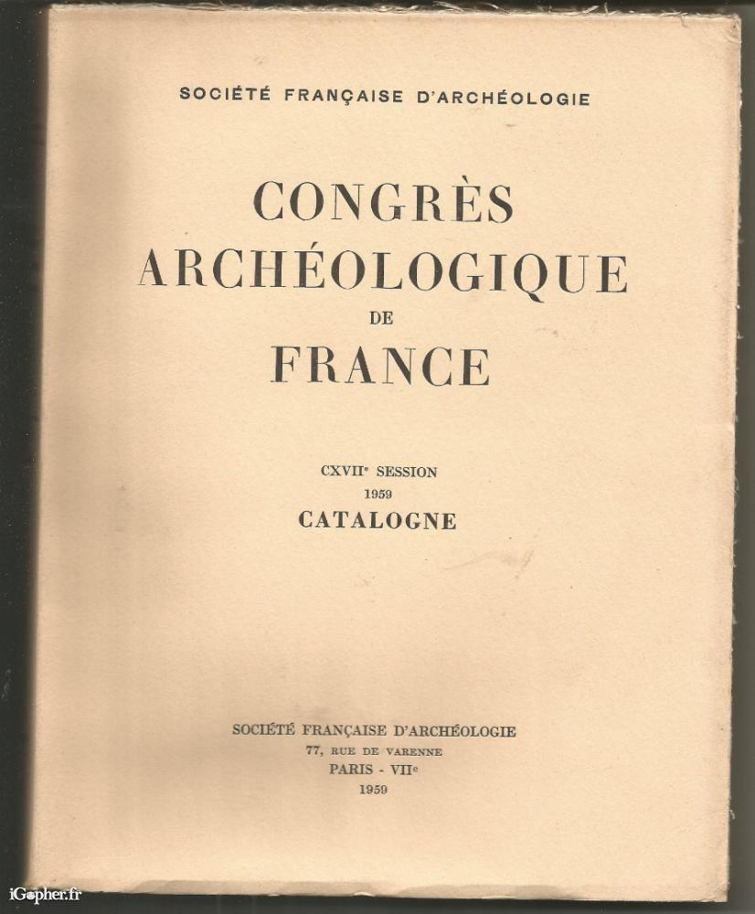 Cet ouvrage titre : "Congrès Archéologique de France : CATALOGNE". Il est paru chez l'éditeur Société Française d'Archéologie, CXVIIe session - 1959. Ce livre comprend des illustrations en noir et blanc.