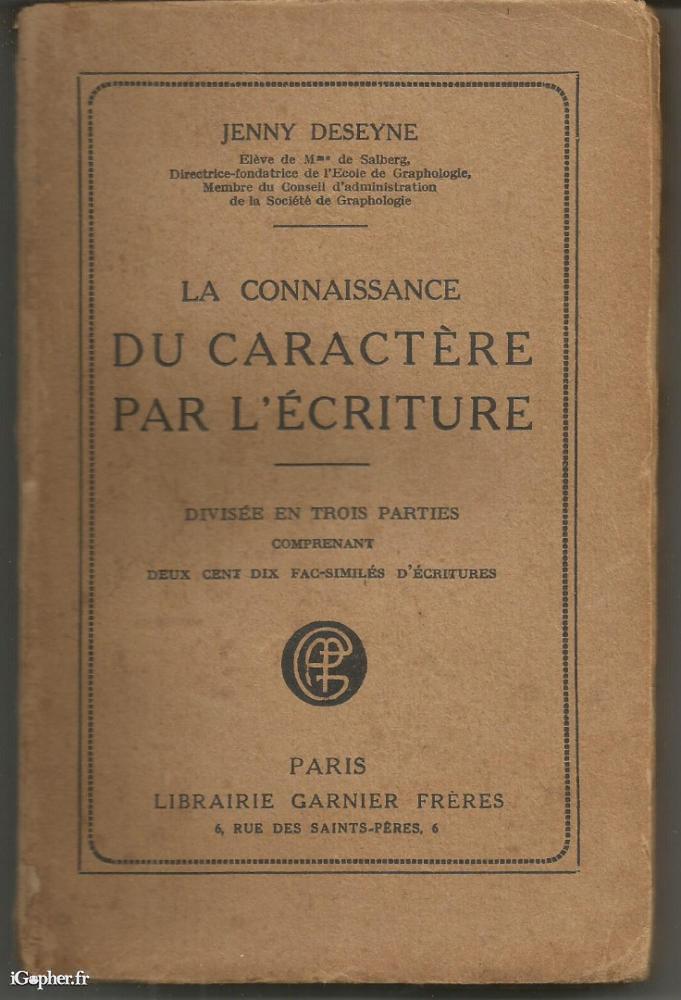 Ouvarge de Jenny DESEYNE, élève de Madame de Salberg, directrice-fondatrice de l'école de graphologie, et membre du conseil d'administration de la société de graphologie.