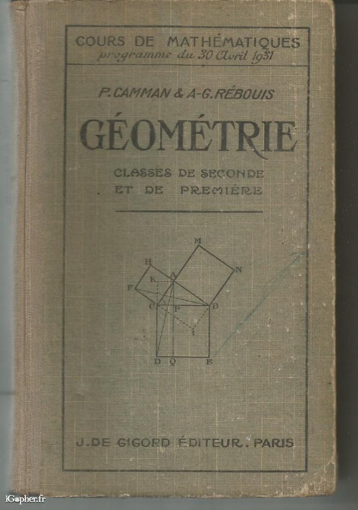 Cet ouvrage titre : Cours de mathématiques Programme du 30 avril 1931 - GEOMETRIE Classes seconde et première par P. CAMMAN & A. G. REBOUIS.