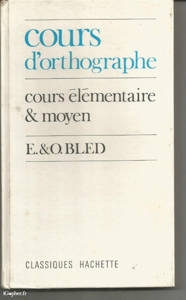 Ouvrage adopté pour les écoles primaires de la Ville de Paris, écrit par E & O BLED, il titre "Cours d'orthographe, Cours élémentaire et moyen".