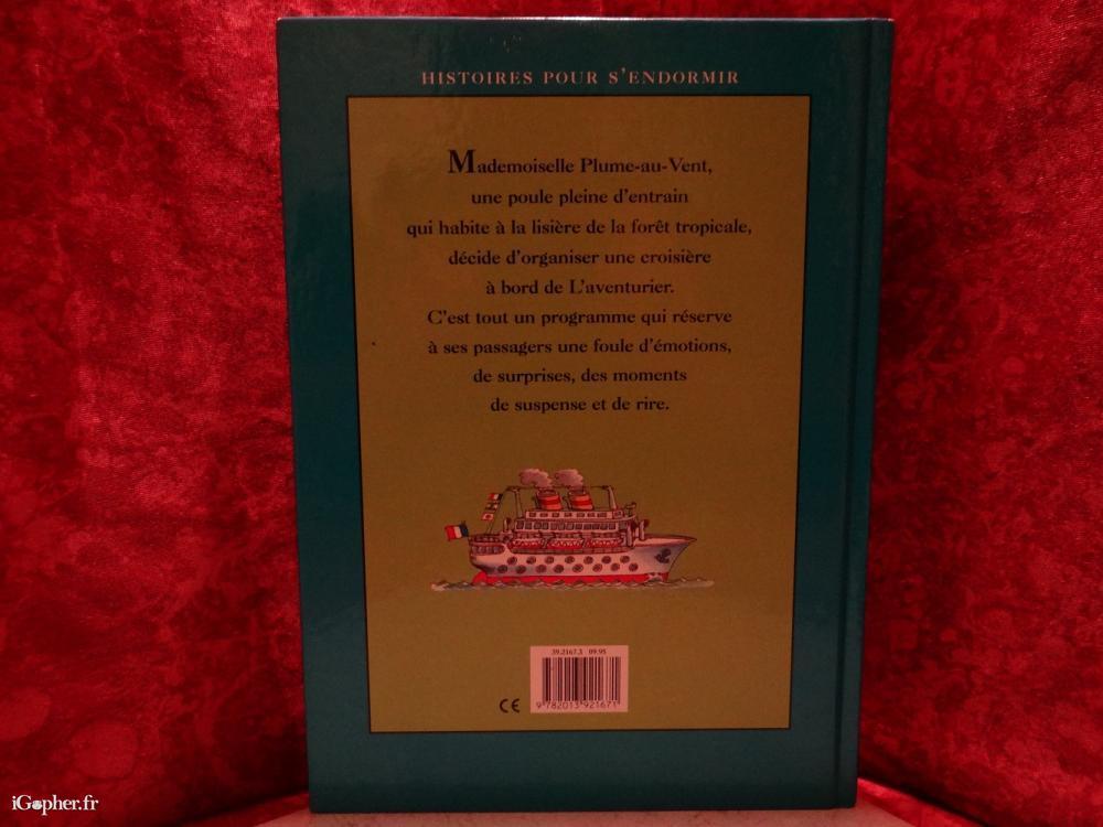 Histoires pour s'endormir de Mademoiselle Plume-au-Vent, une poule pleine d'entrain qui habite à la lisière de la forêt tropicale, décide d'organiser une croisière à bord de l'aventurier.