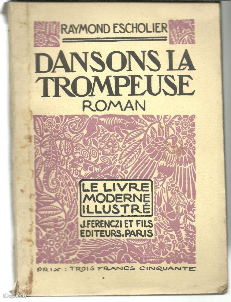 Un livre de Raymond ESCHOLIER (1882 - 1971), il titre : "Dansons la trompeuse". C'est un roman de 178 pages, gagnant d'un prix Northcliffe en 1921, d'après les bois originaux de EMM JODELET.