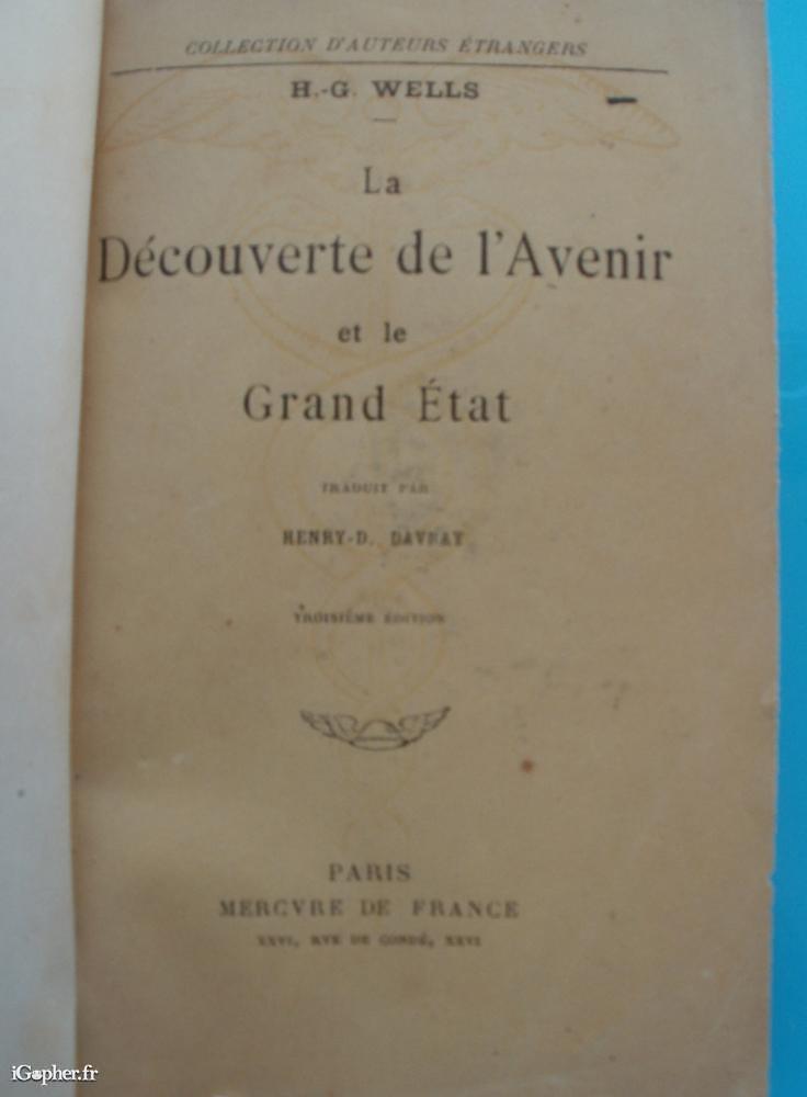 Livre : La découverte de l'avenir et le Grand Etat (HG Wells)