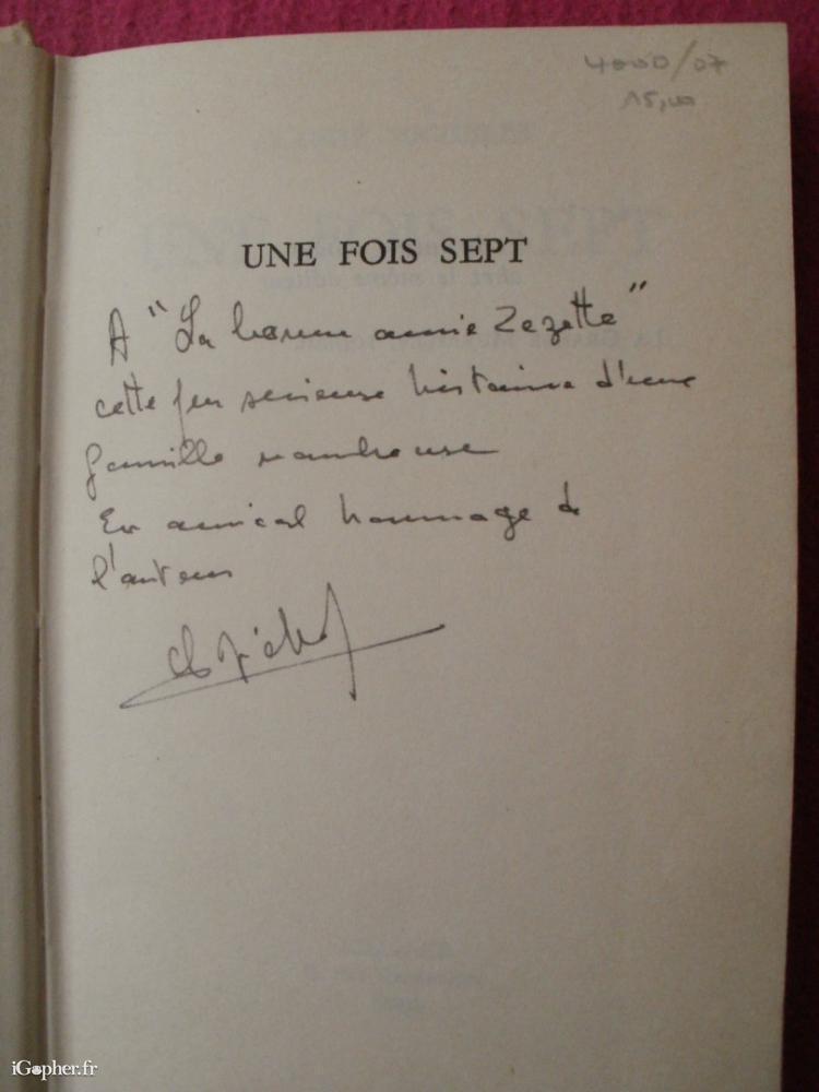 Ce livre de l'auteur Claude MICHELET, titre : "Une fois sept". Le livre est dédicacé par l'auteur à "la bonne amie Zézette".