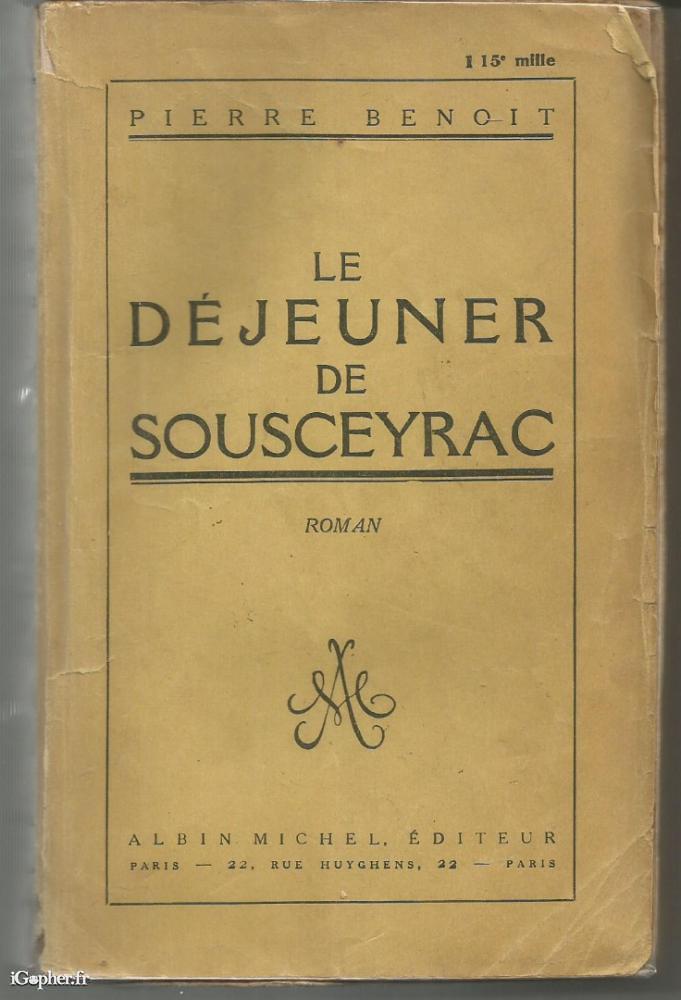 Un livre de 313 pages, écrit par Pierre BENOIT. Il titre "Le déjeuner de Sousceyrac". Un ouvrage publié aux éditions Albin MICHEL en 1931.