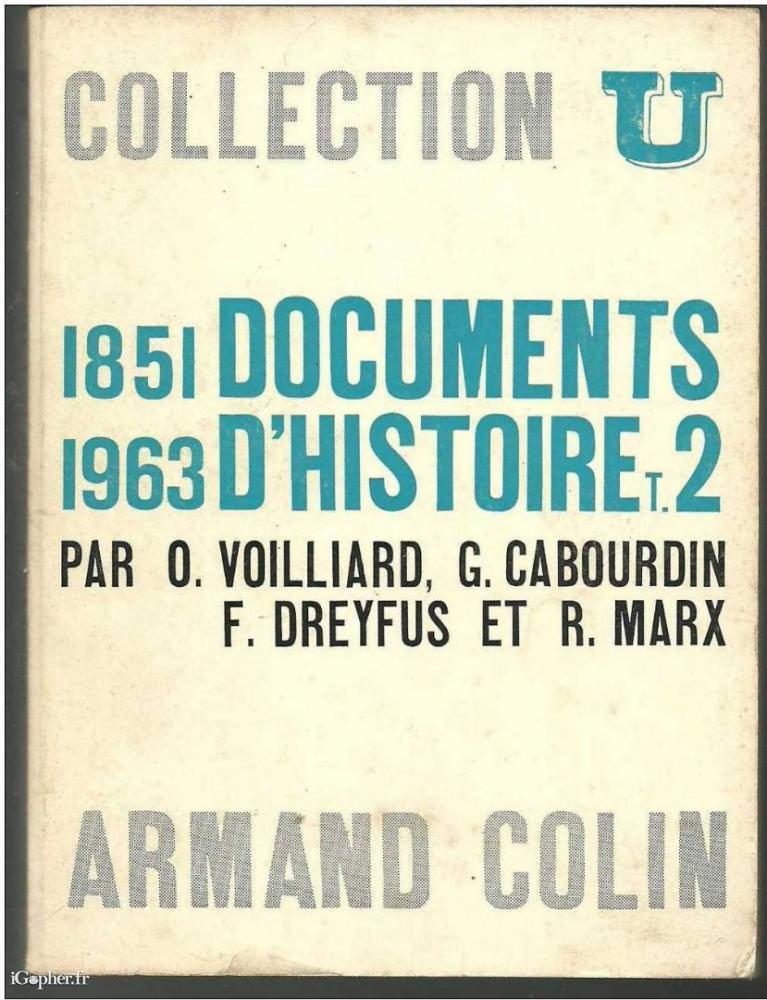 Un livre : "Documents d'Histoire Contemporaine : Tome II : de 1851 à 1963".