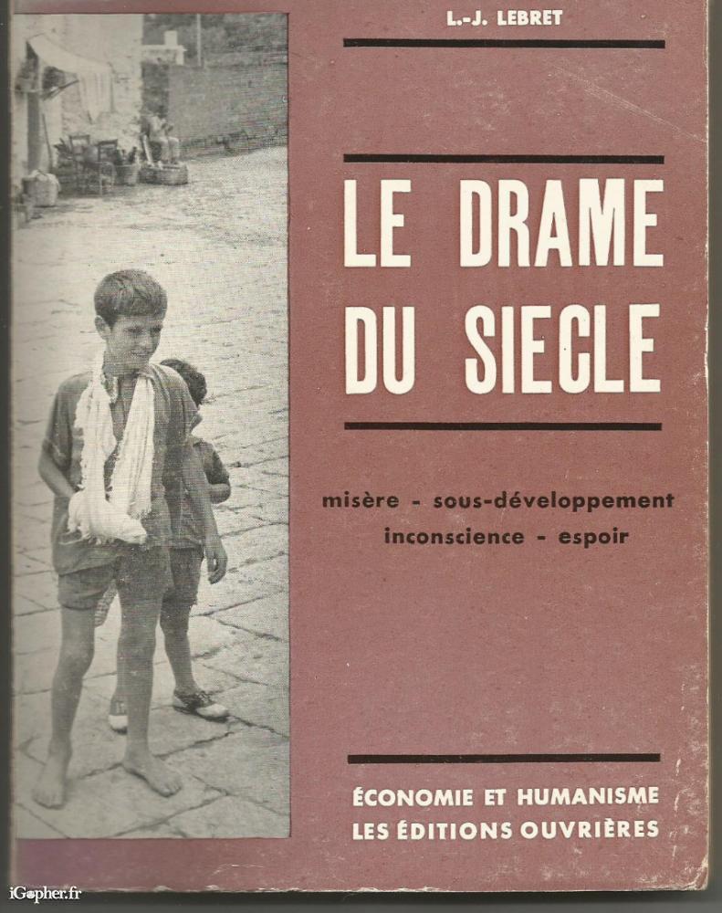 Un livre écrit par L. J. LEBRET, il titre "Le drame du siècle : Misère, sous-développement, inconscience, espoir".