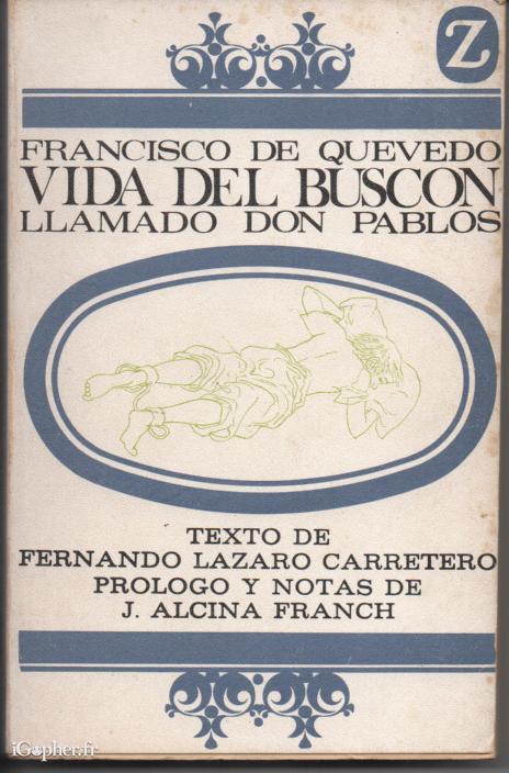 Un livre en espagnol écrit par Fernando Lazaro Carretri, il titre : "Francisco DE QUEVEDO : Vida del Buscon, Tome 1 : Llamado Don Pablos.