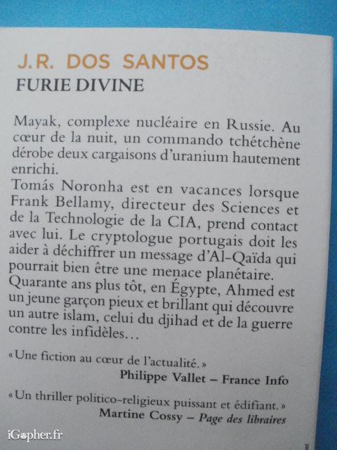 Un roman de J.R. DOS SANTOS, il titre "Furie Divine".