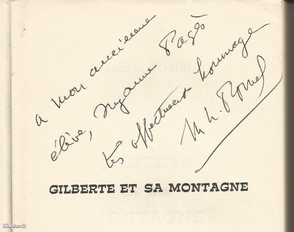 Livre de 324 pages écrit par Marie L. POMEL et dédicacé par l'auteur. Il titre "Gilberte et sa montagne" et a été publié à l'imprimerie Express à Montauban en 1967.