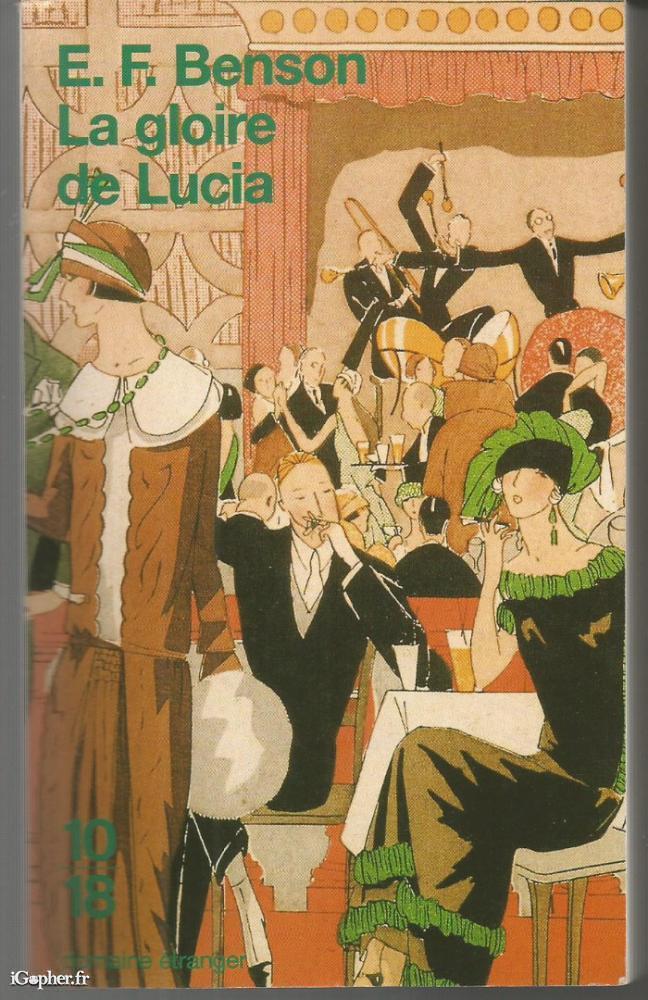 Livre écrit par E. F. BENSON, il titre : La gloire de Lucia. Traduit de l'anglais par Yves Marie Deshays et Patrick Micel. Ouvrage de 428 pages, de la collection "domaine étranger" dirigée par J. Claude Zylberstein.