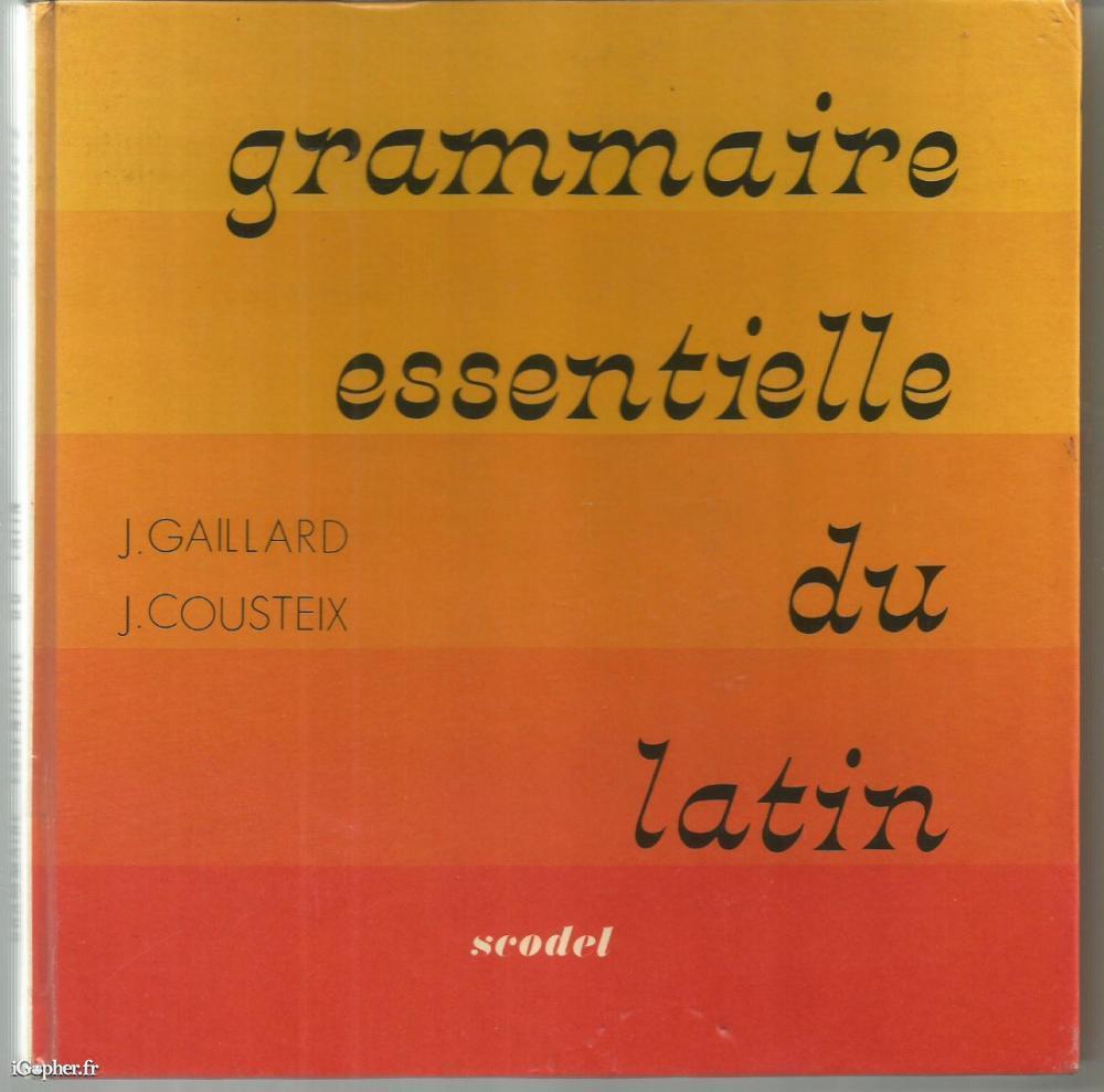 Ouvrage des auteurs J. GAILLARD et J. COUSTEIX, il titre : Grammaire essentielle du latin. Un livre de 240 pages publié aux éditions SCODEL en 1976.