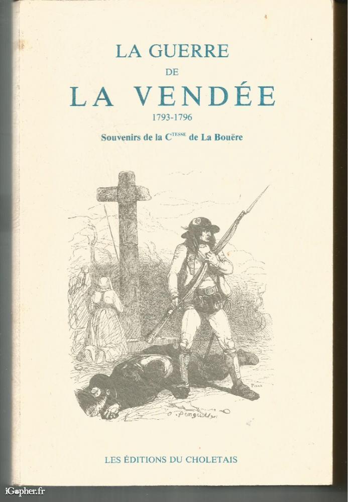 Cet ouvrage titre : La Guerre de la Vendée 1793-1796 : Souvenirs de la Comtesse de la Bouëre. Mémoires inédits publiés par Madame la Comtesse de LA BOUËRE, belle-fille de l'auteur. Préface par le M. COSTA de BEAUREGARD de l'Académie française.