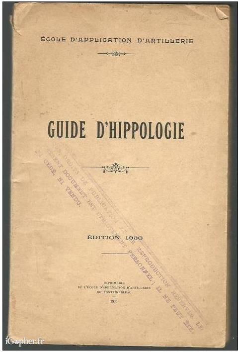 Cet ouvrage titre "Guide d'Hippologie - Editions 1930", il a été édité par l'école d'Application d'artillerie. Livre de 136 pages.