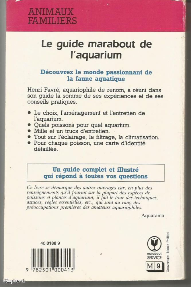 Livre : Le guide marabout de l'aquarium d'eau douce (Henri Favre)