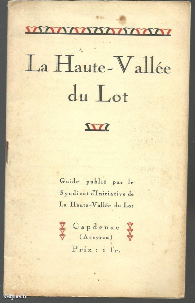 Cet ouvrage titre "La haute-vallée du Lot". Guide publié par le Syndicat d'initiative de la Haute Vallée du Lot à CAPDENAC (Aveyron).