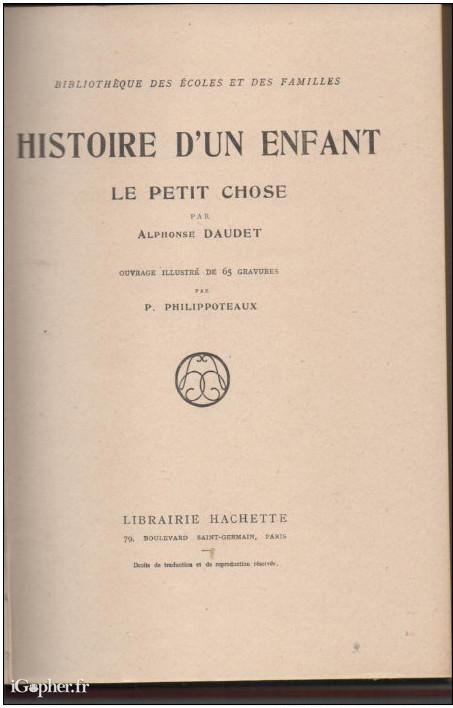 Ce livre porte le titre "Histoire d'un enfant : le petit chose" (non, il n'y a pas de faute d'orthographe). Il comprend 336 pages.