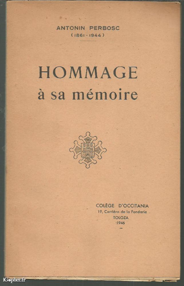 Livre : Hommage à sa mémoire (Antonin Perbosc)