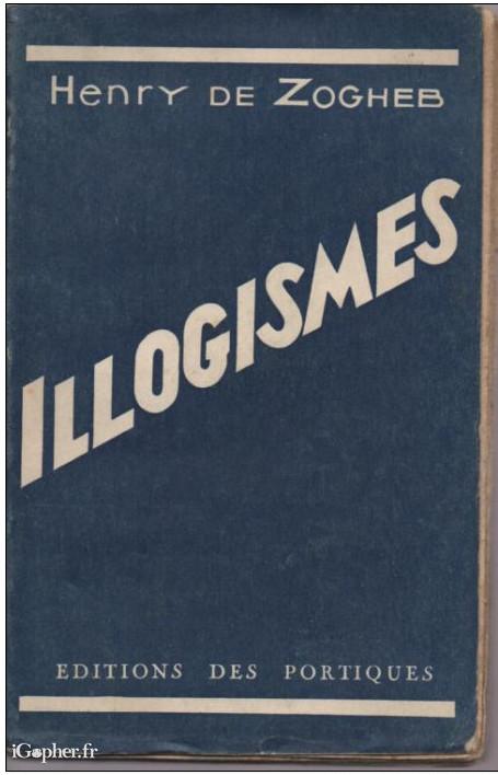 Livre de 254 pages édité en 1933 aux éditions des portiques. Un ouvrage de Henry de ZOGHEB qui titre "Illogismes".