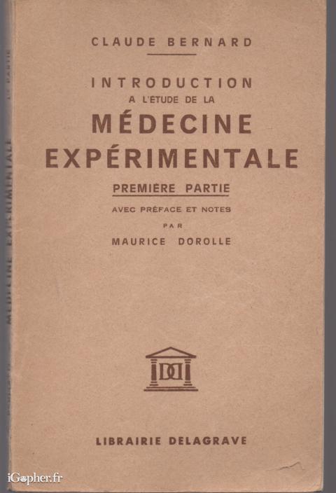 Un livre de Claude BERNARD, il titre : Introduction a l´étude de la médecine expérimentale (1ère partie). Une édition parue en 1965 à la Librairie DELAGRAVE avec une préface et des notes écrites par Maurice DOROLLE.