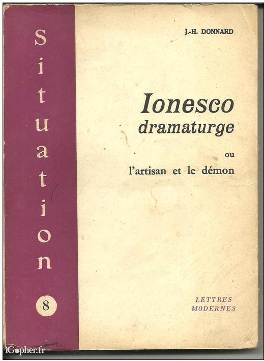 Un ouvrage écrit par J.-H. DONNARD, il titre : IONESCO DRAMATURGE ou l'artisan et le démon. Livre de 198 pages qui fait partie de la collection "Situation" et porte le N°8.