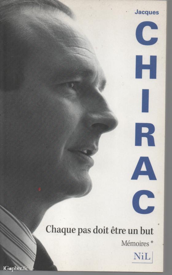 Un livre de l'ancien président français qui titre "Chaque pas doit être un but". Il a été écrit par Jacques CHIRAC et comprend un total de 506 pages.